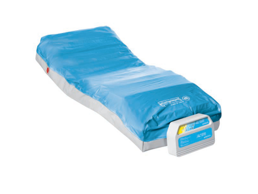 Sistema antidecubito ad aria, dotato di funzionalità dinamica a pressione alternata e statica a bassa pressione continua, completamente sostitutivo del materasso ospedaliero. Sistema a zone differenziate. Superficie con CPR standard Superficie dotata di base di supporto. Superficie in nylon.