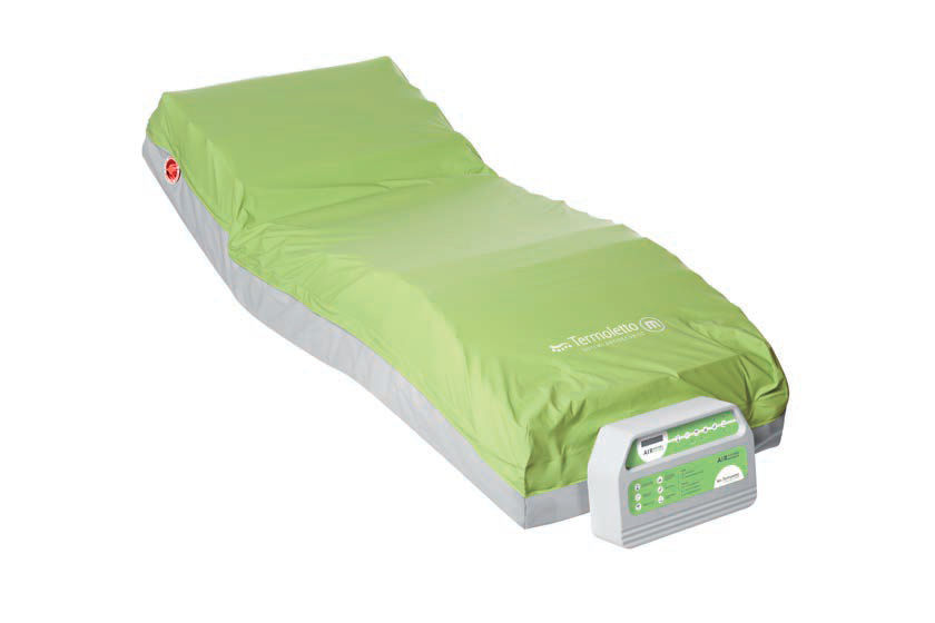 Sistema antidecubito ad aria, dotato di funzionalità dinamica a pressione alternata e statica a bassa pressione continua, completamente sostitutivo del materasso ospedaliero.